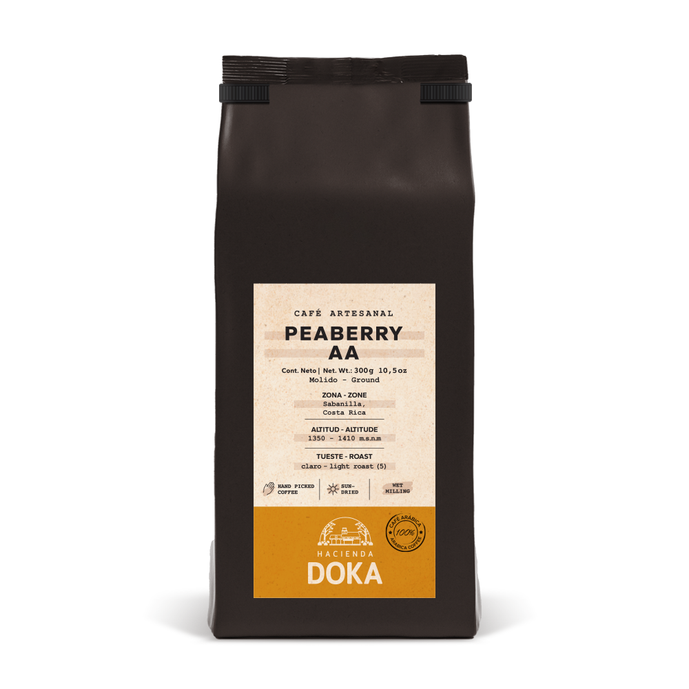 At Hacienda Doka, each peaberry bean is a product of our unwavering dedication to coffee excellence. Sourced exclusively from our estate, we oversee every aspect of its journey – from careful cultivation to precise processing. This single estate approach guarantees a quality and consistency that truly sets our Peaberry AA apart, reflecting a craft that has been refined and cherished through generations.